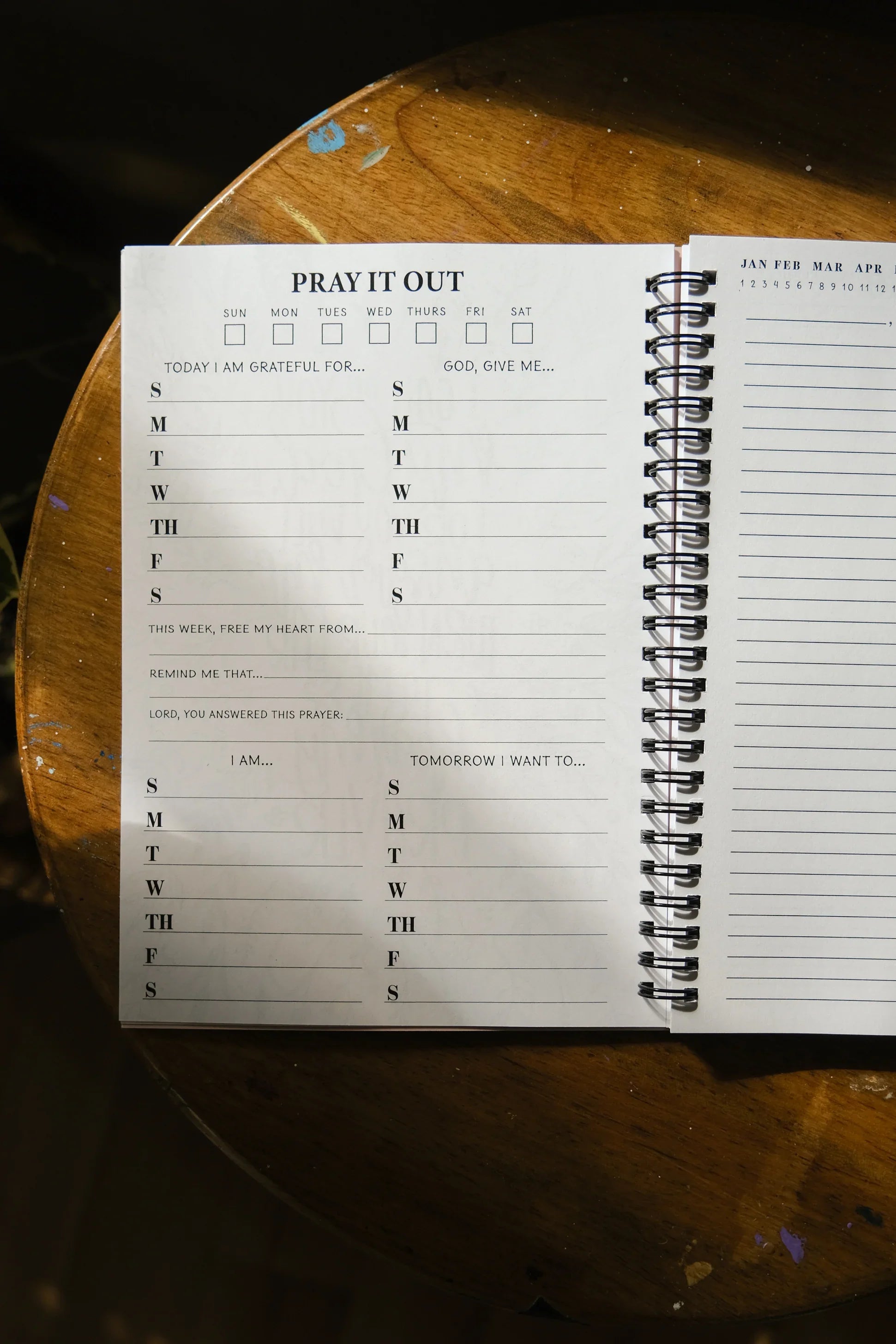Introducing the new and improved Pray It Out Journal. A more portable journal for church sermons / podcasts / Bible study / or any way dose of Jesus. This method of prayer was something that I started doing on scraps of paper in church and over time, Mike brought it to my attention that maybe it was time to take this little idea and manufacture it into a BIG one. And goodness me, we did just that. The journal has 38 weeks of pages (each week has its own 4 pages).